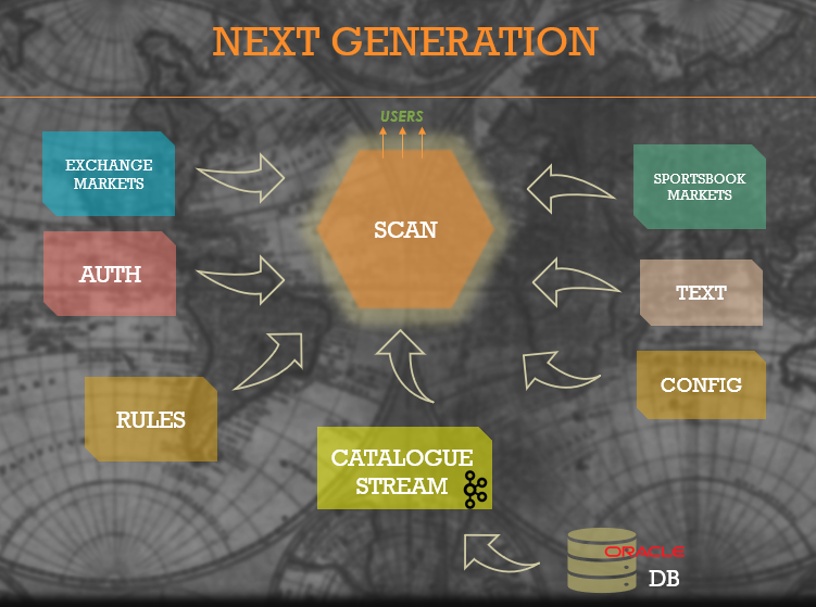 At this point we decided we are going to split the Catalogue navigation capability down the middle into two halves, one half performing the data aggregation, cleansing, efficient transformations and exposing the whole Catalogue model via a Kafka conduit and the other half performing the function of a fast query API based on existing interfaces and contracts that were already well known and had ready integrations, which sourced its catalogue data from the Kafka stream. At the outset, this was a very simple idea, but the complexity of the underlying data model meant that building the producer stack and modelling the Catalogue data in a way that works fast and efficiently over even the weakest of links, and then rewriting the Navigation query API completely to use the new data sources, was a lot harder than it seemed. There was a huge amount of work needed to validate the colossal data model, and make sure there are no deviations from the existing contracts. A significant amount of effort was also spent to make sure the re-assembly of data model on the other side of the pond was robust and resilient enough, to provide consistent data at all times. All this had to be achieved without compromising on the strict SLAs for data availability ( markets need to be available for customers to bet on within a few minutes some times less than a minute after they get created in our system to maximise our revenues ) and the strict latency SLAs on the API ( our customers typically expect responses within a few tens of milliseconds even while serving tens of thousands of requests per second ). We decided to call this generation of stream based navigation stack simply SCAN, a more intuitive and friendly name than the ominous sounding MGA. We finally managed to get all this done and integrated into our first Fanduel state ready for testing in Feb 2020. That was a huge milestone as we proved the new architecture and laid the foundations for future scale out.